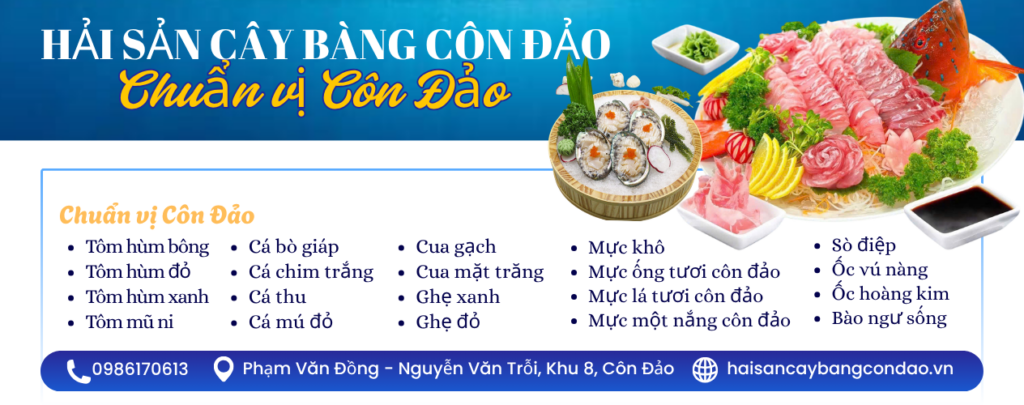 Với đồ Hải sản phong phú đa dạng được trưng bày hơn 20 loại tôm cá và 30 loại ốc tươi sống được đánh bắt tại Côn Đảo….
